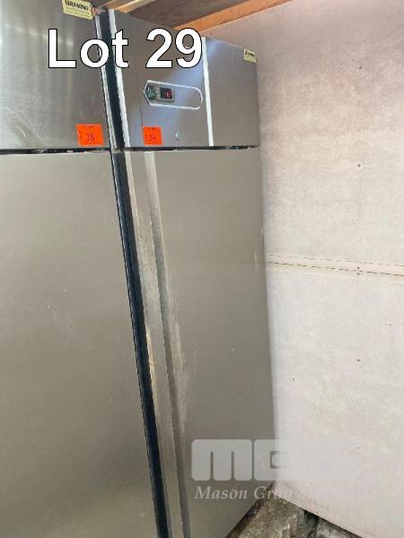 CATERWORKS UPRIGHT SINGLE DOOR CHEFS FREEZER, STAINLESS STEEL CASED, TOP MOUNT COMPRESSOR, APPROX 400 LITRE, 240v