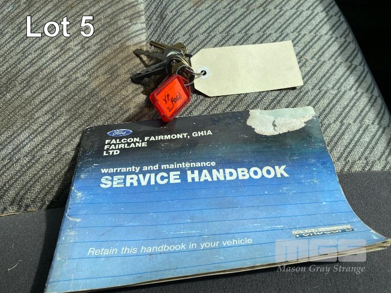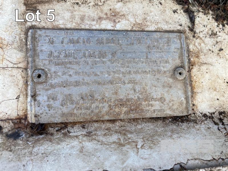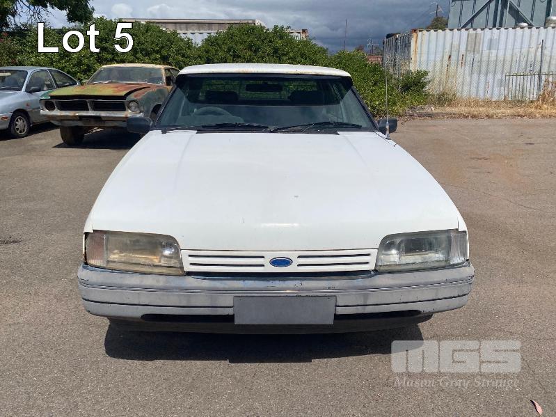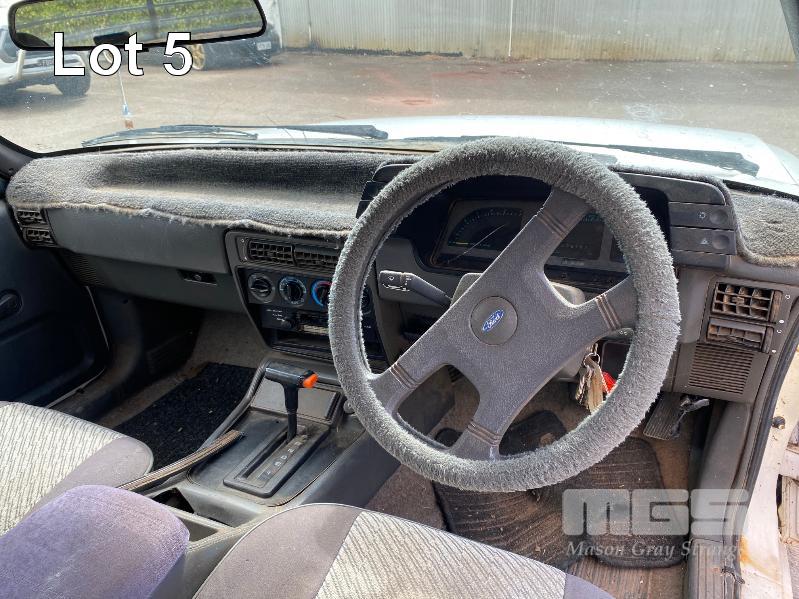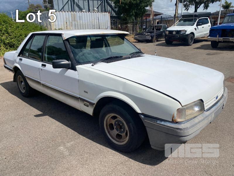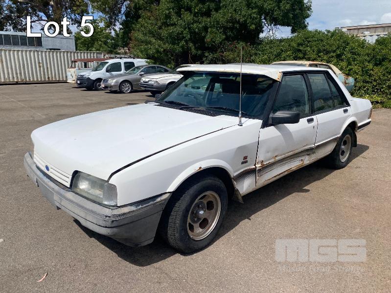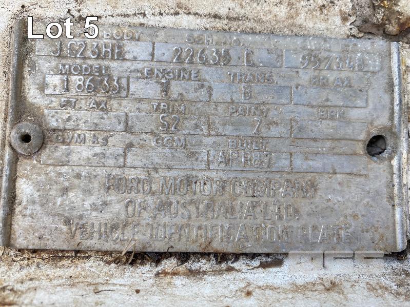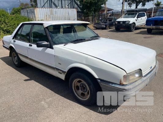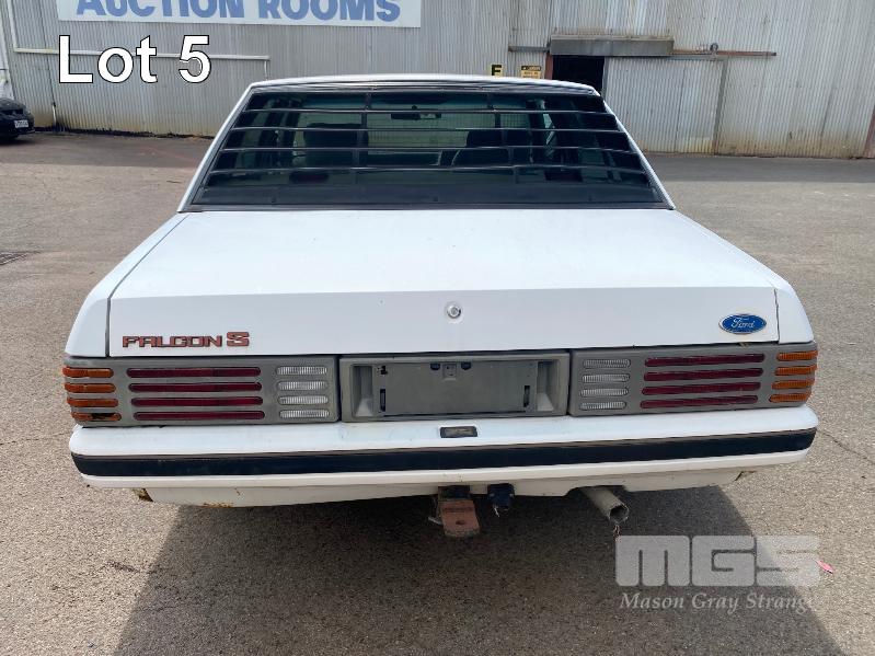 1987 FORD XF FALCON S SEDAN REG: NO PLATES VIN: JG23HE22635C ODO: 228,167kms SHOWING 6 CYLINDER EFI, AUTOMATIC TRANSMISSION, WHITE DUCO, 4 DOORS, 5 SEAT, AIR CON, ALLOY WHEELS, POWER STEERING, KEY #27 (WITH 2 KEY/S) CONDITION: LHS DOORS & GUARD - DENTS & SCRAPES