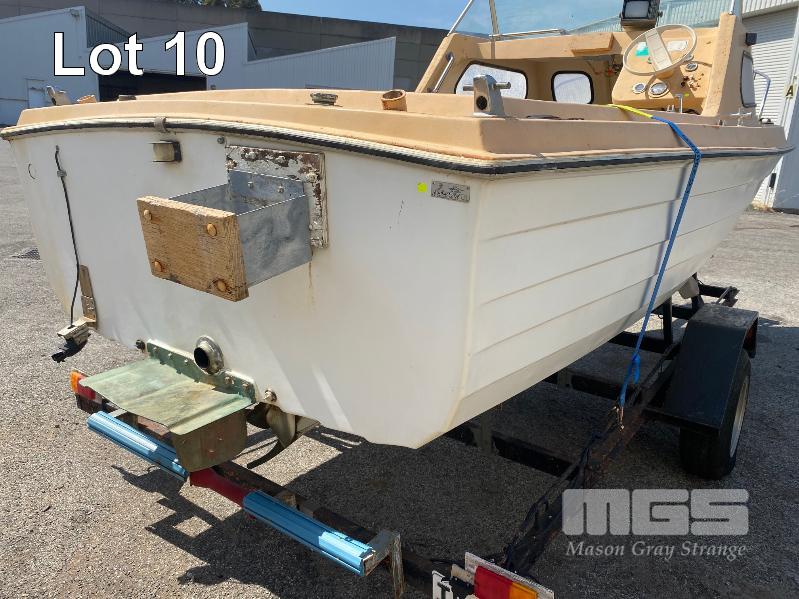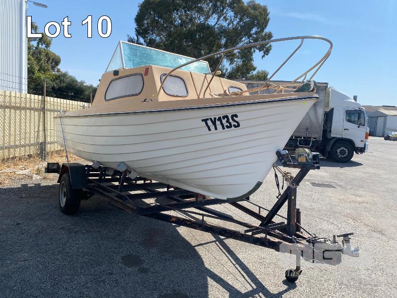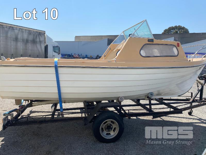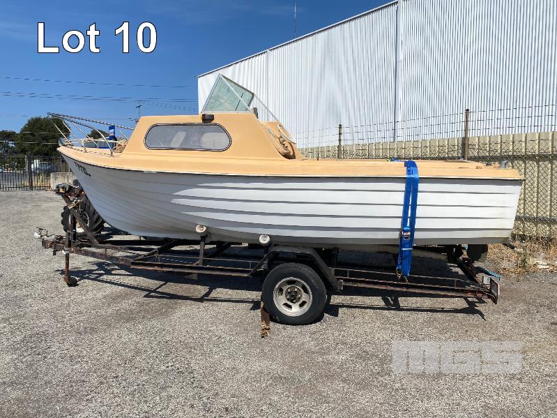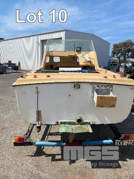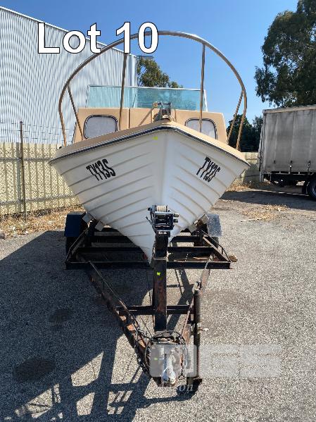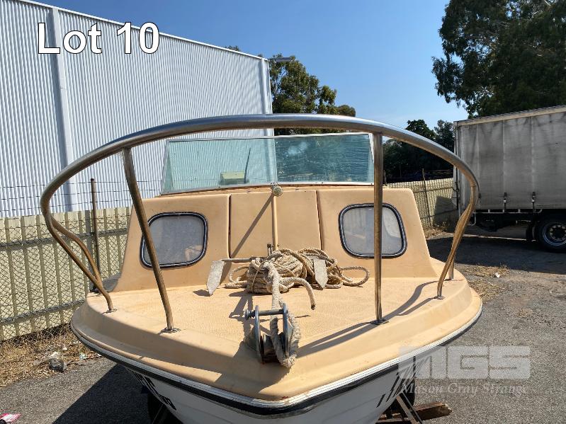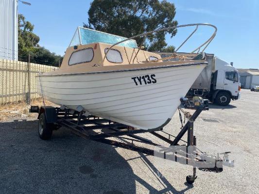 1976 DEALTRY HALF CABIN FIBREGLASS BOAT 5.49m IN BOARD CHRYSLER 6 CYLINDER PETROL ENGINE HIN: AUTSA035039BZ1 MARINE REG: TY13S ON 1977 SINGLE AXLE BOAT TRAILER, REG: TKV 224 (SA) BRAKES, BALL HITCH, HAND WINCH, ALLOY WHEELS WITH REG PAPERS