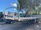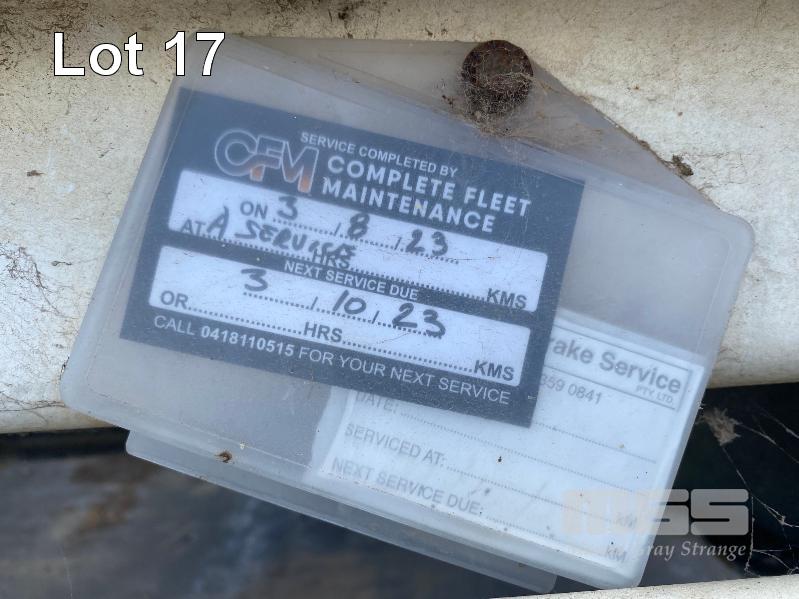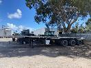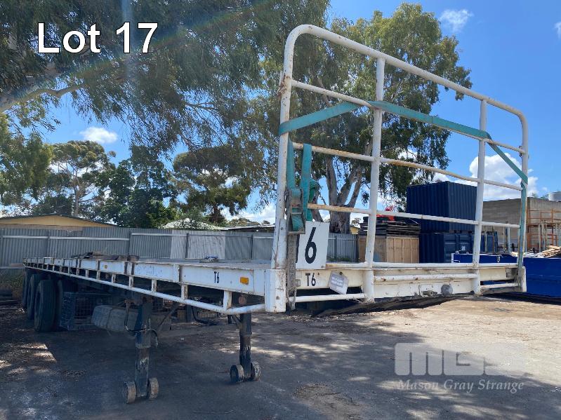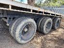 41' (12.5m) TRI AXLE SEMI TRAILER FLAT TOP REG: TBE 247 (SA) PLANT NO: T6 HUBOMETER: STEMCO 1,228kms SHOWING SPRING SUSPENSION, SPIDER RIMS, 11R 22.5, DRUM BRAKES, CHECKER PLATE STEEL DECK 1 x FRONT GATE 1 x SPARE WHEEL UNDER TRAY BEARING CAGE TYRES: AVERAGE CONDITION (WITH PAPERS)
