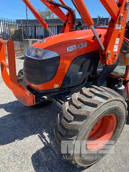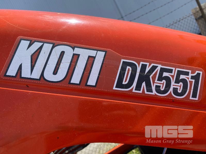 TRACTOR/LOADER, KIOTI, 4x4 MOD: DK551 S/NO: LA1100019 DAEDONG 2.2 LITRE DIESEL ENGINE, 40kw, HOURS: 2,689 SHOWING MANUAL 4 SPEED WITH HIGH-LOW SELECTOR FITTED WITH AL 55 LOADER ATTACHMENT, GP BUCKET: 1650mm (W) PTO, 3PTL, REAR HYDRAULIC COUPLINGS HINGED ROLL BAR 1 x KEY #21