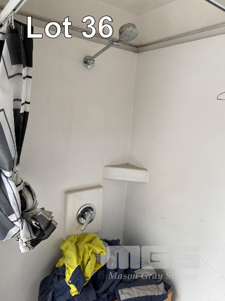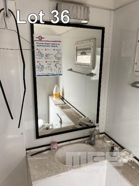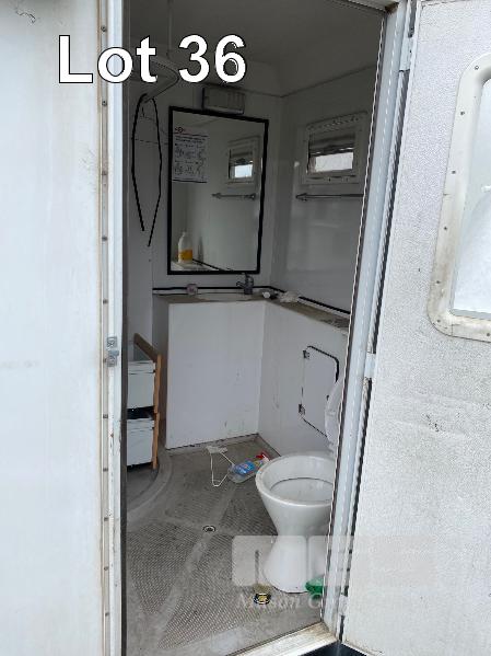 TRANSPORTABLE ENSUITE MANUFACTURED BY ENSUITES ON SITE 1800 x 1800 x 2400mm (H) INSULATED ALUMINIUM & FIBREGLASS CONSTRUCTION FITTED WITH SINGLE TOILET, SHOWER, WASH BASIN & STORAGE CABINET, 240V WATER PRESSURE PUMP, LPG GAS HOT WATER HEATER, RINNAI V1200, WITH BUILT IN LPG BOTTLE STORAGE ENCLOSURE, 240v INLET POWER PLUG, LIGHTING & GPO OUTLET. STEEL SKID BASE WITH FORKLIFT POCKETS, OVERHEAD LIFTING POINTS & 4 x HEIGHT ADJSUTABLE OUTRIGGER LEGS