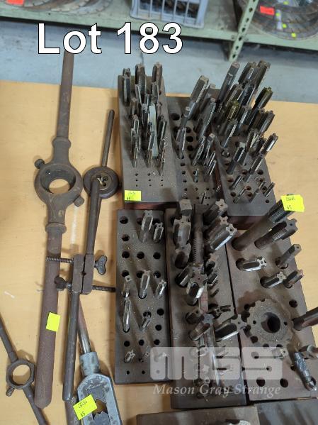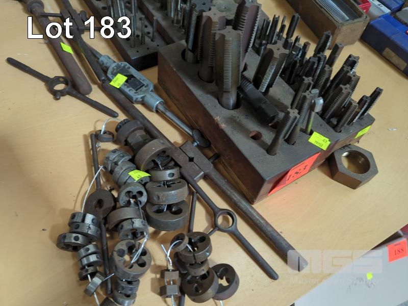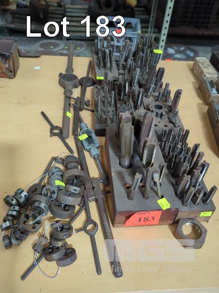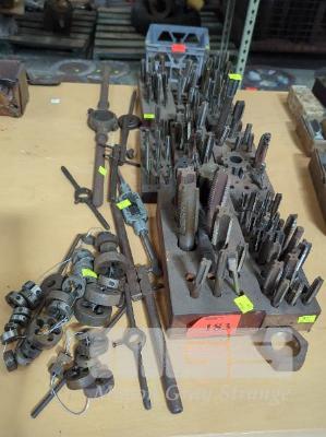 8 x TRAYS TAPS & DIES, VARIOUS SIZES FROM 50 TO 2mm INC HOLDERS