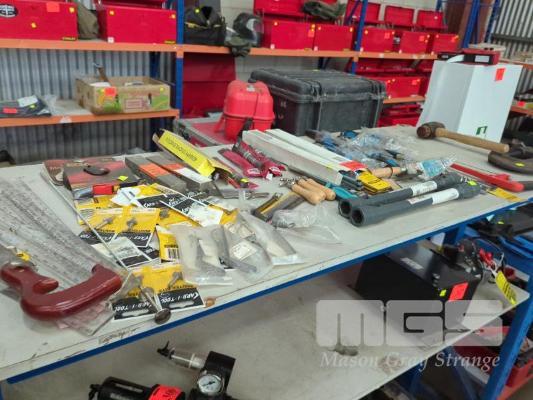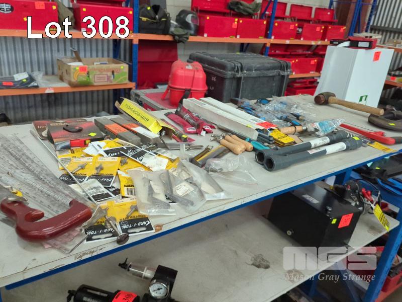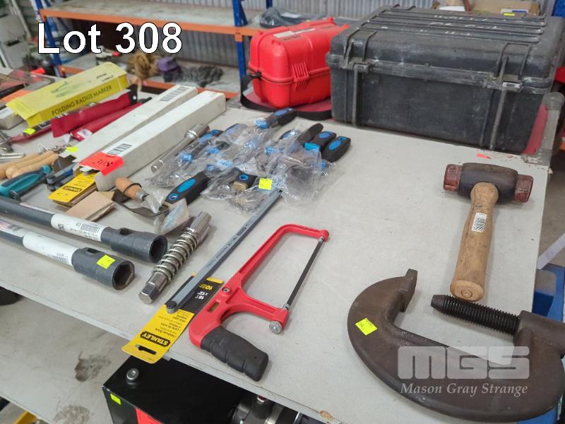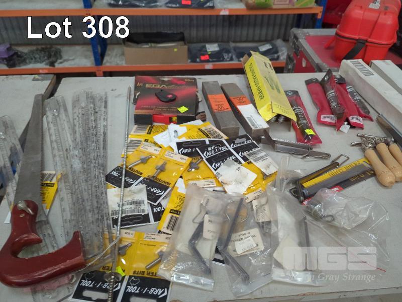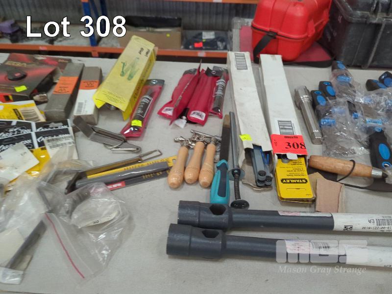 30 x ROUTER BITS, CENTRE PUNCHES, FILES, HACKSAW BLADES, THOR HAMMERS, TRUCK WRENCH, SCRAPERS, ETC