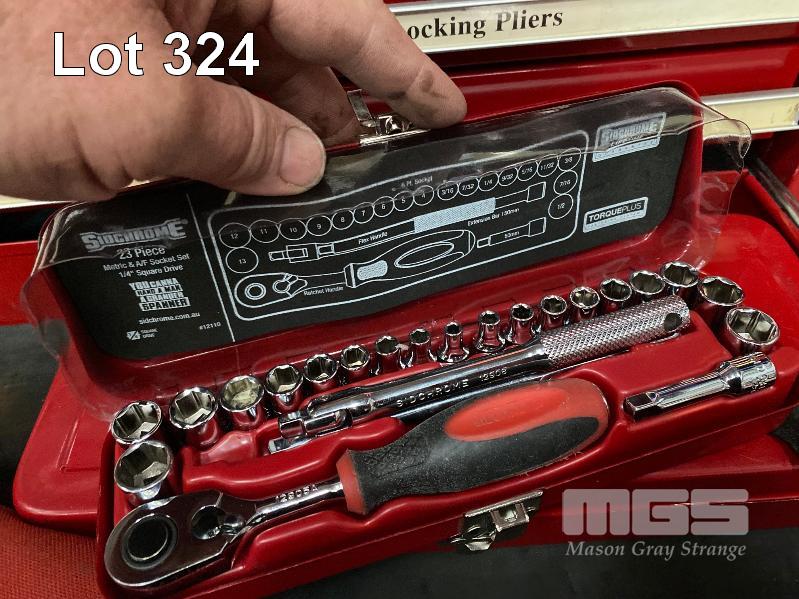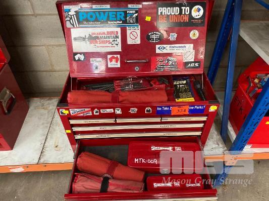 JBS 6 DRAWER TOOLBOX INCLUDING PUNCH SET, SIDCHROME SPANNER SETS, SIDCHROME SOCKET SETS, HAMMER, HEX KEYS, ETC