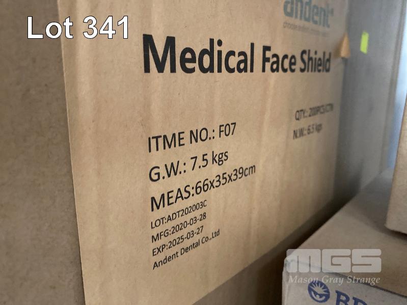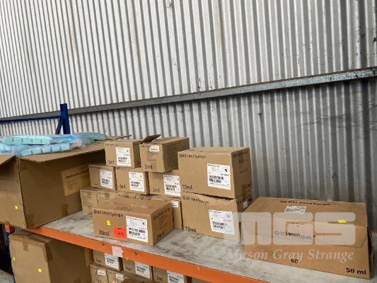 14 x BOXES PLASTIC SYRINGES INC 3ml, 10ml, 20ml & 50ml & 1 x BOX (200/BOX) MEDICAL FACE SHIELDS
