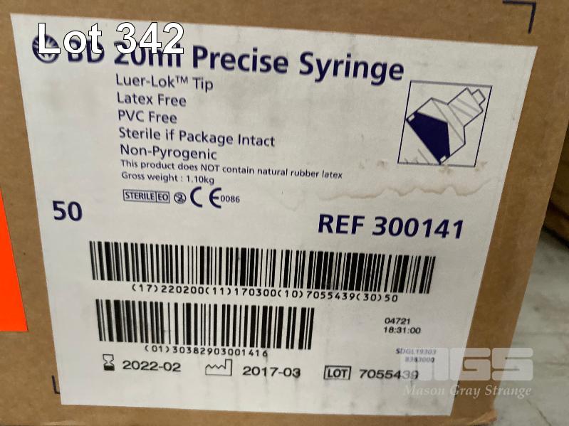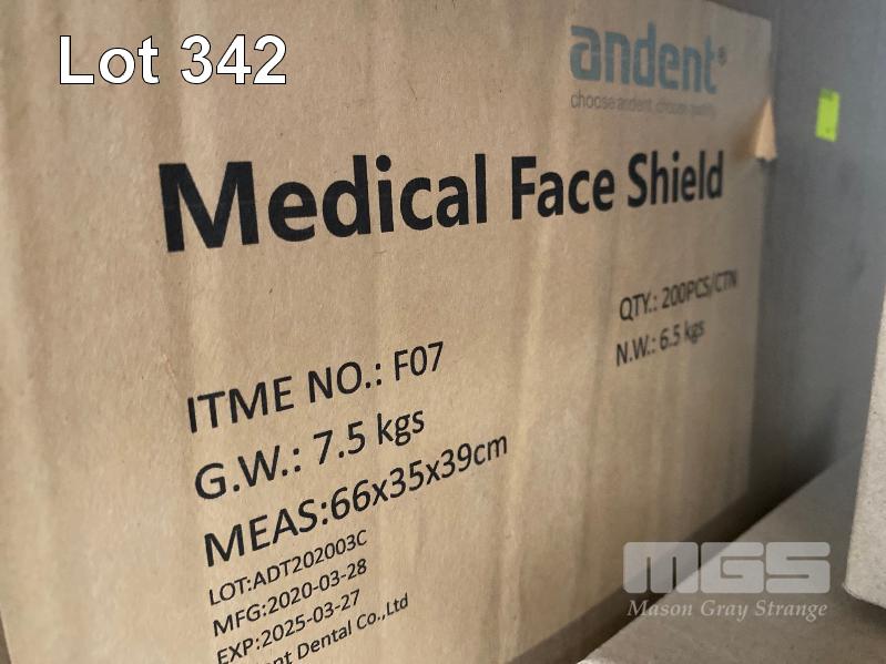 14 x BOXES PLASTIC SYRINGES INC 3ml, 10ml, 20ml & 50ml & 1 x BOX (200/BOX) MEDICAL FACE SHIELDS