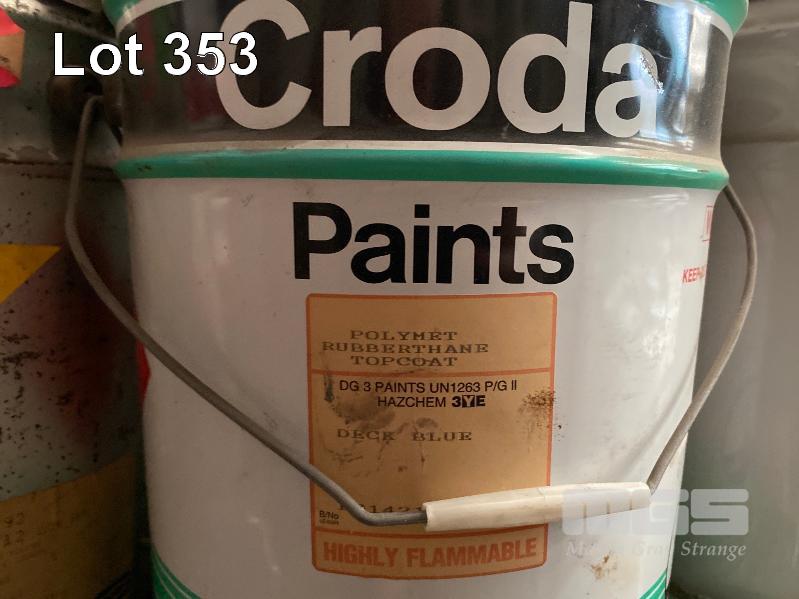 24 x 20 LITRE TINS INDUSTRIAL 2 PACK EPOXY & POLYURETHANE, BRANDS INCLUDE CRODA, VESSEY, WATTYL, BLUE, BLACK, ZINC, ETC