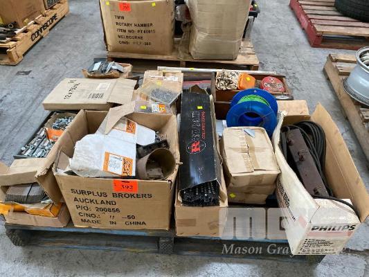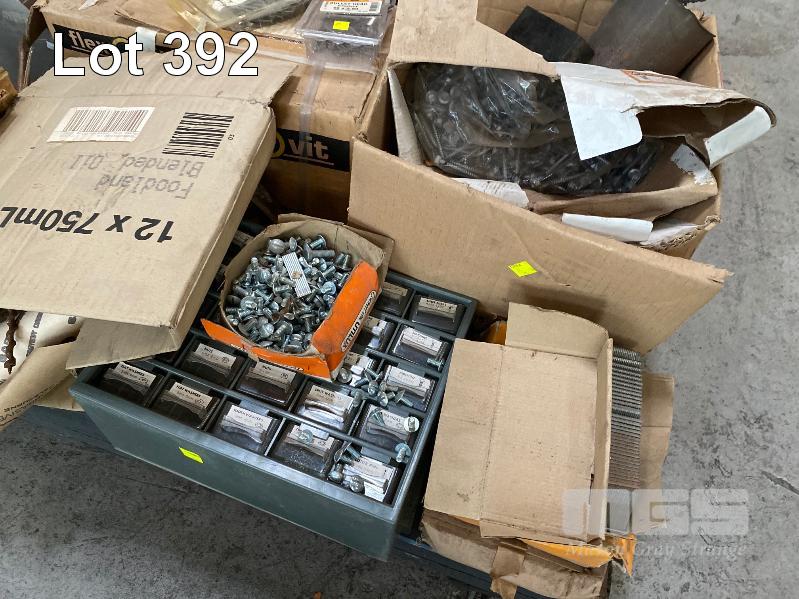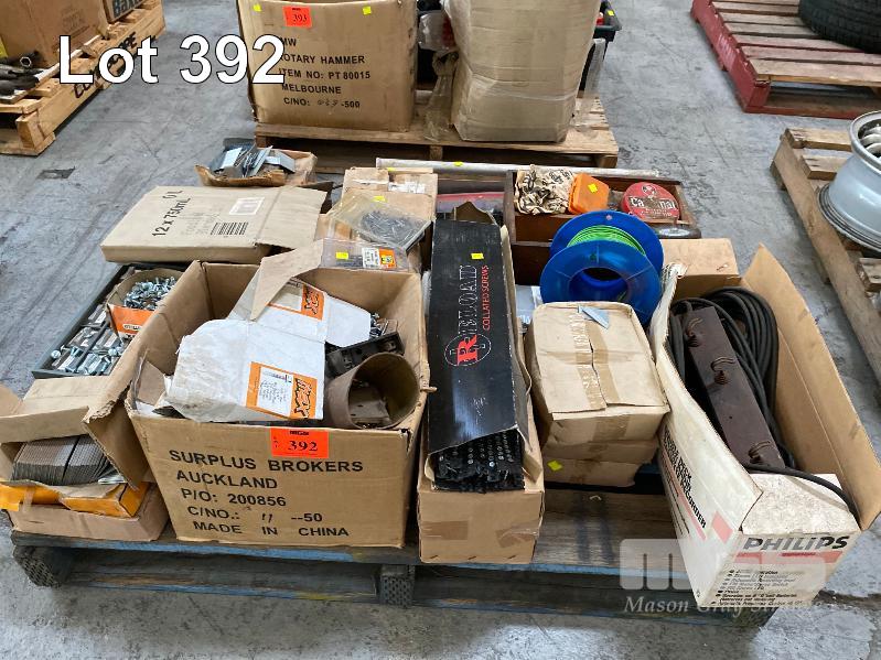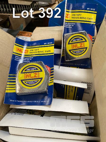 BOXES OF MEASURING TAPES, GATE HINDGES, ETC