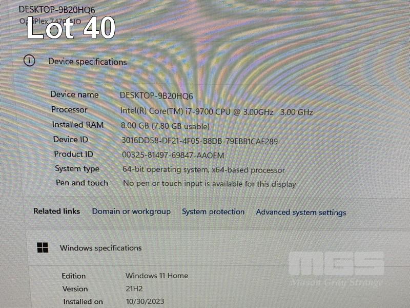 ALL-IN-ONE PC, DELL OPTIPLEX 7470, CORE i7 9700 (9TH GEN) @ 3GHz, 8GB DDR4 RAM, 512GB NVMe M.2 SSD, INBUILT 23.8" FHD WIDESCREEN (1920x1080), INTEL HD GRAPHICS, WEBCAM, 5 x USB, 1 x USB-C, WINDOWS 11 HOME INSTALLED, KEYBOARD & MOUSE S/N:9P3HRZ2