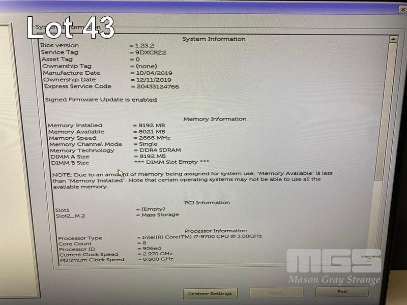 ALL-IN-ONE PC, DELL OPTIPLEX 7470, CORE i7 9700 (9TH GEN) @ 3GHz, 8GB DDR4 RAM, 512GB NVMe M.2 SSD, INBUILT 23.8" FHD WIDESCREEN (1920x1080), INTEL HD GRAPHICS, WEBCAM, 5 x USB, 1 x USB-C, WINDOWS 11 HOME INSTALLED, KEYBOARD & MOUSE S/N:9DXCRZ2