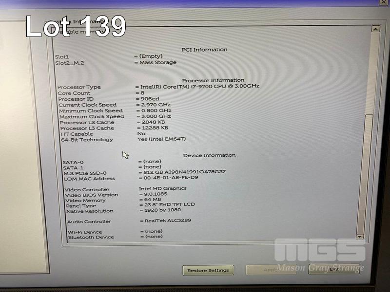 ALL-IN-ONE PC, DELL OPTIPLEX 7470, CORE i7 9700 (9TH GEN) @ 3GHz, 8GB DDR4 RAM, 512GB NVMe M.2 SSD, INBUILT 23.8" FHD WIDESCREEN (1920x1080), INTEL HD GRAPHICS, WEBCAM, 5 x USB, 1 x USB-C, WINDOWS 11 HOME INSTALLED, KEYBOARD & MOUSE S/N:9DWJRZ2