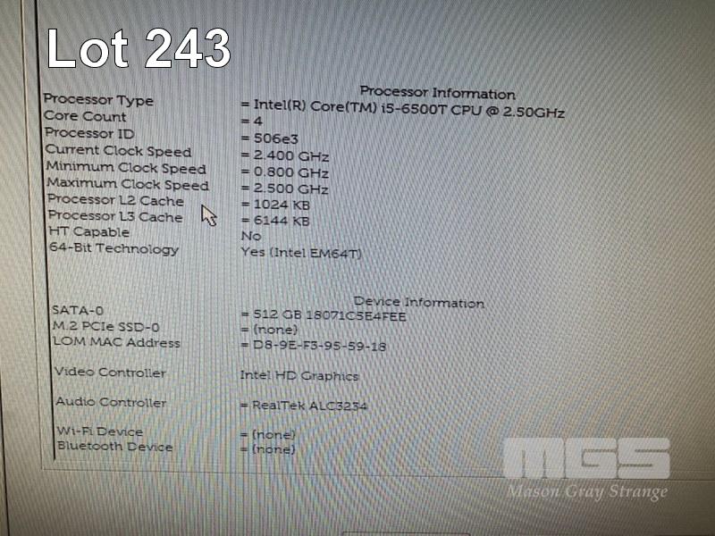 DESKTOP PC, DELL OPTIPLEX 3050 MICRO, CORE i5 6500T (6TH GEN) @ 2.5GHz, 8GB DDR4 RAM, 512GB SSD, INTEL HD VIDEO, 6 x USB, WINDOWS 10 HOME INSTALLED (NO POWER SUPPLY, NO KEYBOARD, NO MOUSE) S/N:4KGP6Q2