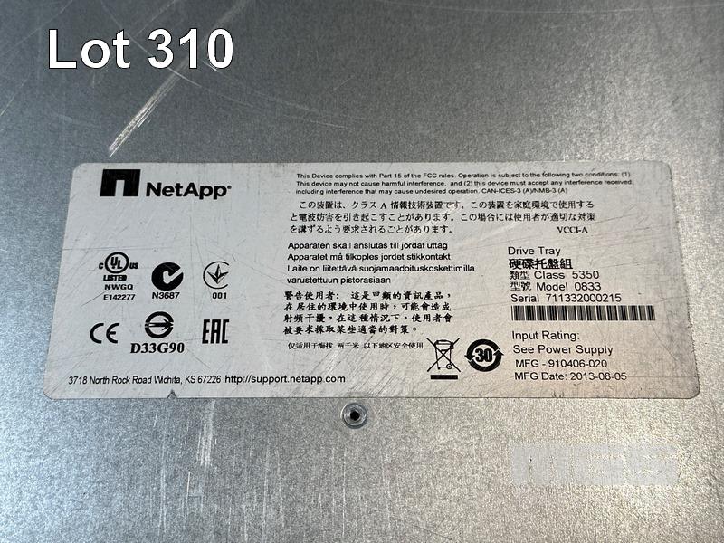 RACKMOUNT STORAGE ARRAY, NETAPP MODEL 0833, 2U, 24 x 600GB SAS HDD, 2 x SAS STORAGE CONTROLLERS, 2 x PSU (NO CABLES)