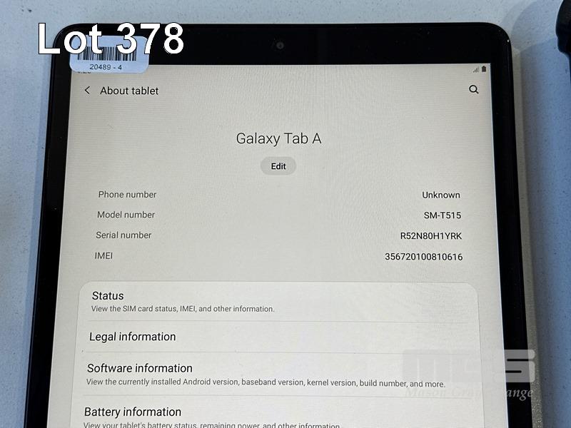 TABLET PC, SAMSUNG GALAXY TAB A, MODEL SM-T515, 32GB, OTTERBOX CASE, WITH USB-C CABLE & CHARGER S/N:R52N80H1YRK