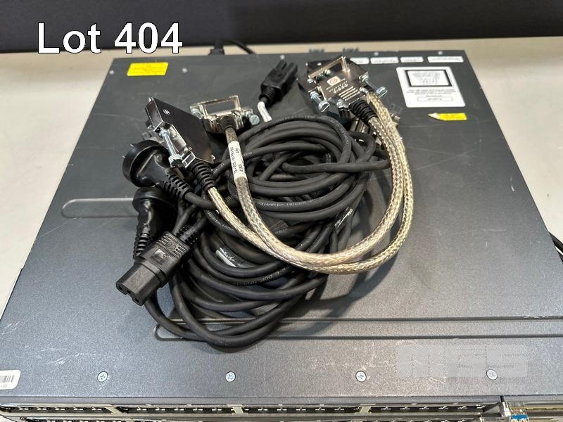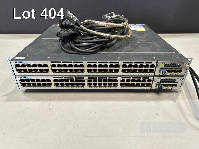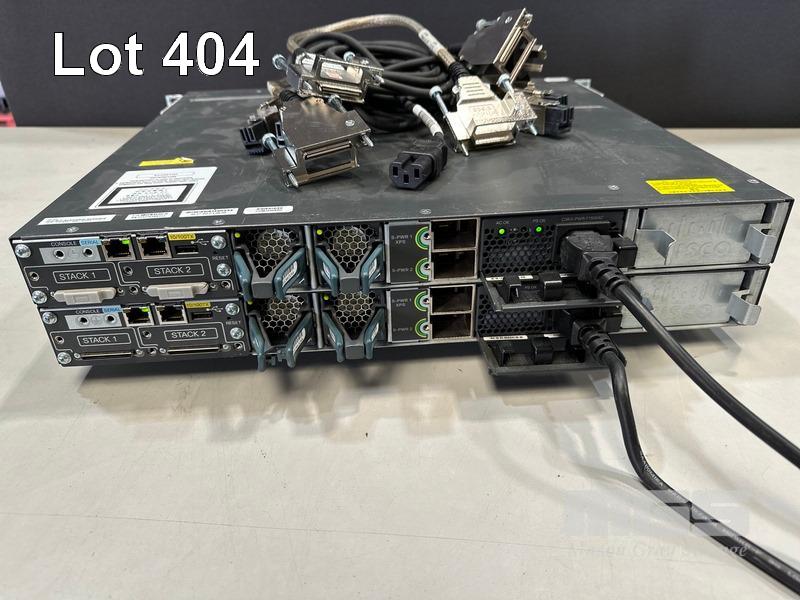 2 x CISCO CATALYST 3750-X SERIES 48-PORT SWITCHES, WS-C3750X-48P-S V03 EACH WITH C3KX-NM-1G NETWORK MODULE, STACK CABLES & IEC-C15 NOTCH POWER CABLES S/N:FDO1628R312, FDO1628V1SQ
