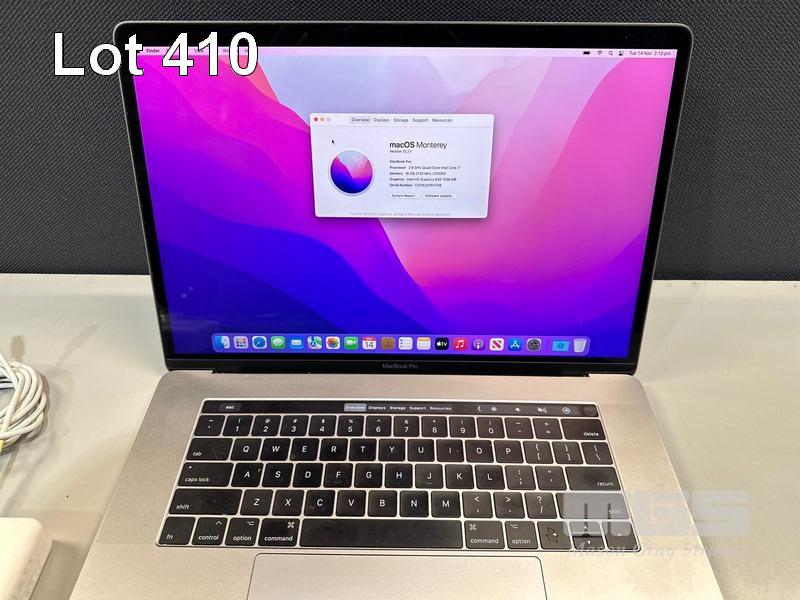 LAPTOP, APPLE MACBOOK PRO (A1707), CORE i7 7820HQ (7TH GEN) @ 2.9GHz, 16GB DDR3 RAM, 512GB SSD, 15.4" RETINA DISPLAY (2880x1800), INTEL HD GRAPHICS 630, THUNDERBOLT 3, TOUCHBAR, Wi-Fi, BLUETOOTH, MAC OS 12 INSTALLED & USB-C POWER SUPPLY (NOTE: SMALL SCRATCH ON SCREEN, MINOR MARKS ON SCREEN) S/N:C02W231SHTD6