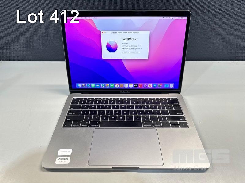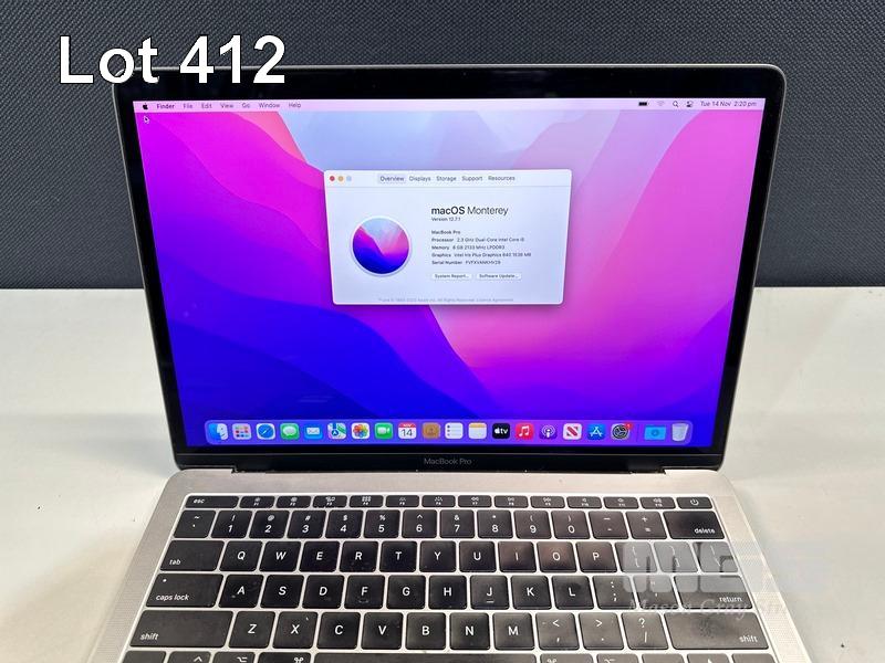 LAPTOP, APPLE MACBOOK PRO (A1708), CORE i5 7360U (7TH GEN) @ 2.3GHz, 8GB DDR3 RAM, 256GB SSD, 13.3" RETINA DISPLAY (2560x1600), INTEL IRIS PLUS GRAPHICS 640, THUNDERBOLT 3, Wi-Fi, BLUETOOTH, MAC OS 12 INSTALLED (NO USB-C POWER SUPPLY) (NOTE: SMALL SCRATCH ON SCREEN, MINOR MARKS ON SCREEN) S/N:FVFXVANKHV29