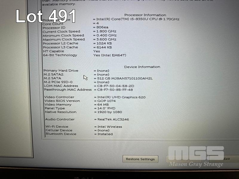 LAPTOP, DELL LATITUDE 5490, CORE i5 8350U (8TH GEN) @ 1.7GHz, 8GB DDR4 RAM, 512GB M.2 SSD, 14" WIDESCREEN (1920x1080), INTEL UHD GRAPHICS 620, Wi-Fi, BLUETOOTH, WINDOWS 11 HOME INSTALLED & POWER SUPPLY (NOTE: MOUSE BUTTON FAULT) S/N:9N3G7S2