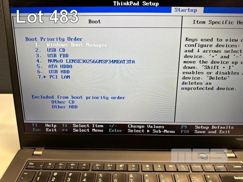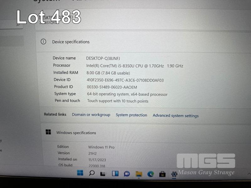 LAPTOP, LENOVO THINKPAD T480s, TYPE 20L8, CORE i5 8350U (8TH GEN) @ 1.7GHz, 8GB DDR4 RAM, 256GB NVMe M.2 SSD, 14" TOUCHSCREEN (1920x1080), INTEL HD VIDEO, Wi-Fi, BLUETOOTH, WINDOWS 11 PRO INSTALLED (NO USB-C POWER SUPPLY) (NOTE: MINOR MARKS ON SCREEN) S/N:PC0Y2WLL