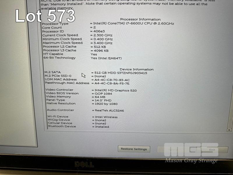 LAPTOP, DELL LATITUDE 7480, CORE i7 6600U (6TH GEN) @ 2.6GHz, 16GB DDR4 RAM, 512GB M.2 SSD, 14" WIDESCREEN (1920x1080), INTEL HD GRAPHICS 520, Wi-Fi, BLUETOOTH, WINDOWS 10 HOME INSTALLED & POWER SUPPLY (NOTE: BATTERY NOT HOLDING CHARGE) S/N:GJKDQH2