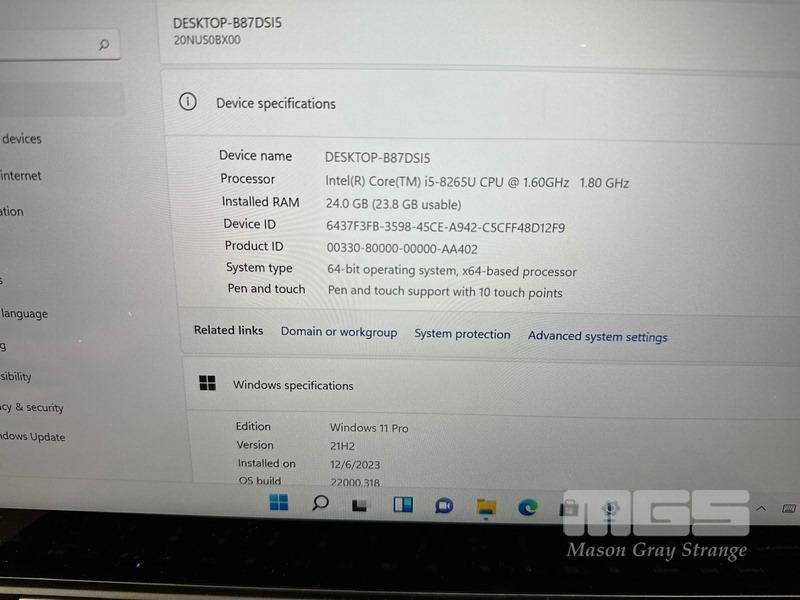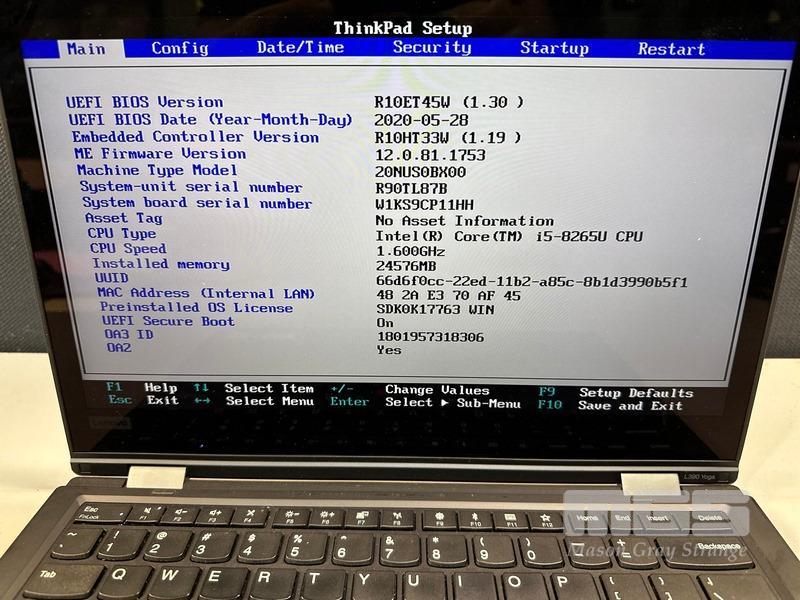 LAPTOP, LENOVO THINKPAD L390 YOGA, TYPE 20NU, CORE i5 8265U (8TH GEN) @ 1.6GHz, 24GB DDR4 RAM, 256GB SSD, 13.3" TOUCHSCREEN (1920x1080), INTEL UHD GRAPHICS, Wi-Fi, BLUETOOTH, WINDOWS 11 PRO INSTALLED (NO USB-C POWER SUPPLY) (NOTE: MINOR DAMAGE TO CASING) S/N:R90TL87B
