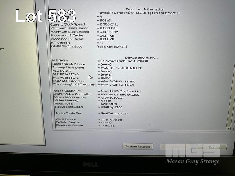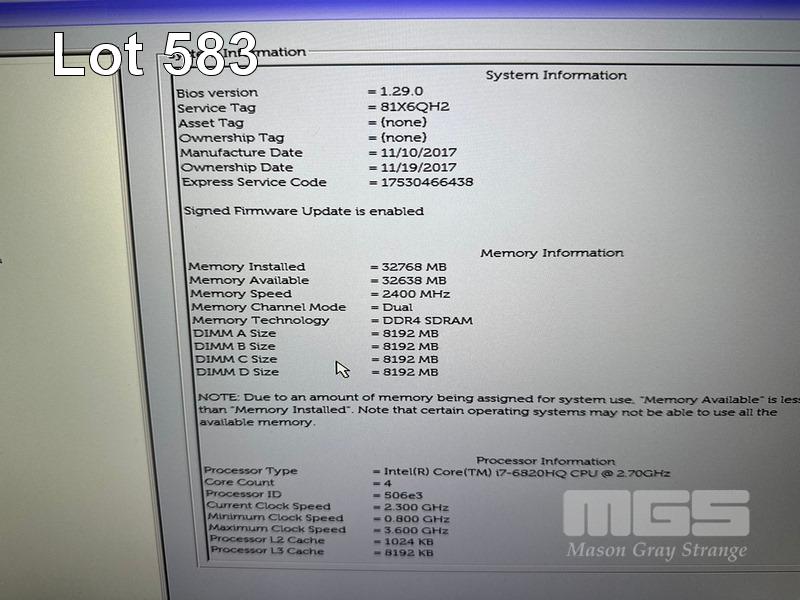 LAPTOP, DELL PRECISION 7720, CORE i7 6820HQ (6TH GEN) @ 2.7GHz, 32GB DDR4 RAM, 256GB M.2 SSD, 1TB SATA HDD, 17.3" UHD WIDESCREEN (3840x2160), 4GB NVIDIA QUADRO M1200 VIDEO, Wi-Fi, BLUETOOTH, WINDOWS 10 PRO INSTALLED & POWER SUPPLY (NOTE: SCREEN FAULT - LINES) S/N:81X6QH2