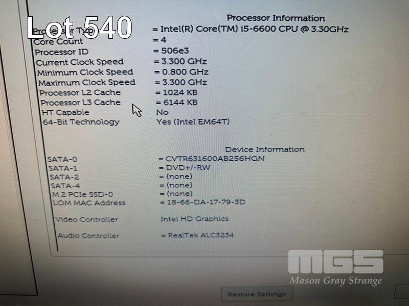 DESKTOP PC, DELL OPTIPLEX 7040 SFF, CORE i5 6600 (6TH GEN) @ 3.3GHz, 8GB DDR4 RAM, 256GB SSD, DVD-RW, INTEL HD VIDEO, WINDOWS 10 HOME INSTALLED (NO KEYBOARD, NO MOUSE) S/N:25FXKG2