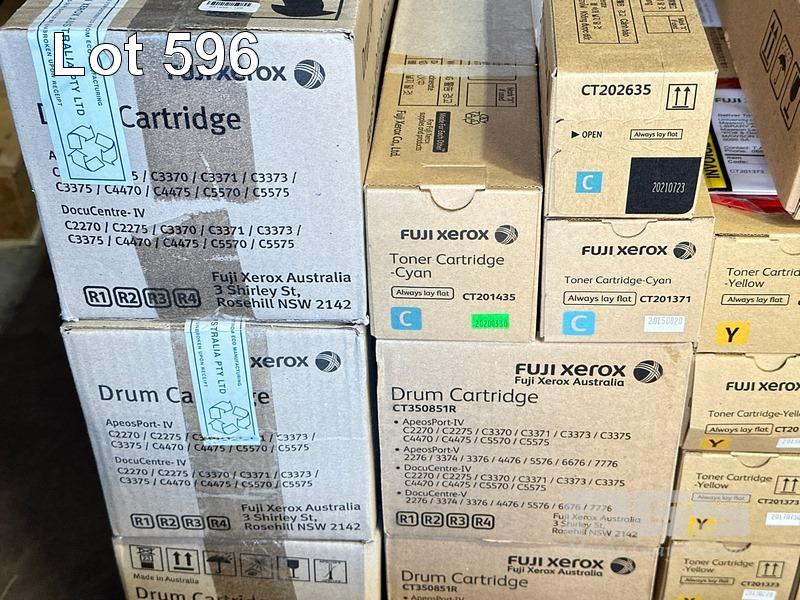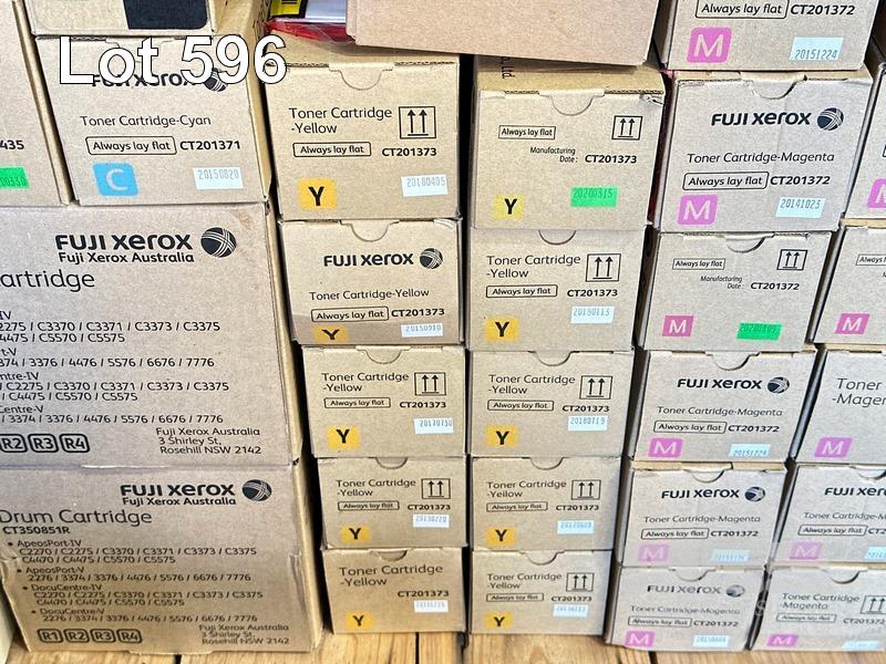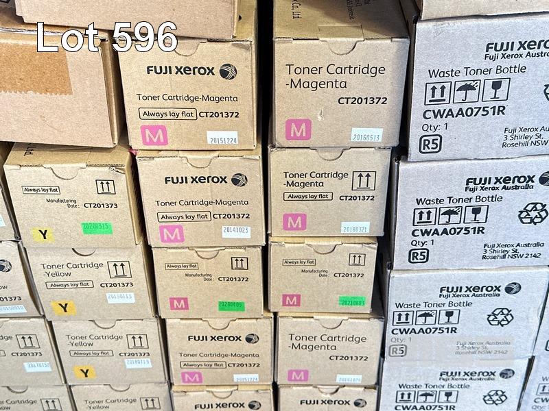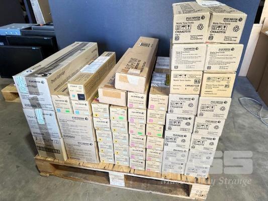 1 x SMALL PALLET FUJI XEROX PHOTOCOPIER TONER CARTRIDGES INC. 3 x CYAN CT201371 / CT201435 / CT202635, 10 x YELLOW CT201373, 12 x MAGENTA CT201372, 5 x DRUM CARTRIDGES CT350851 / CT350851R, 16 x WASTE TONER BOTTLES CWAA0751R