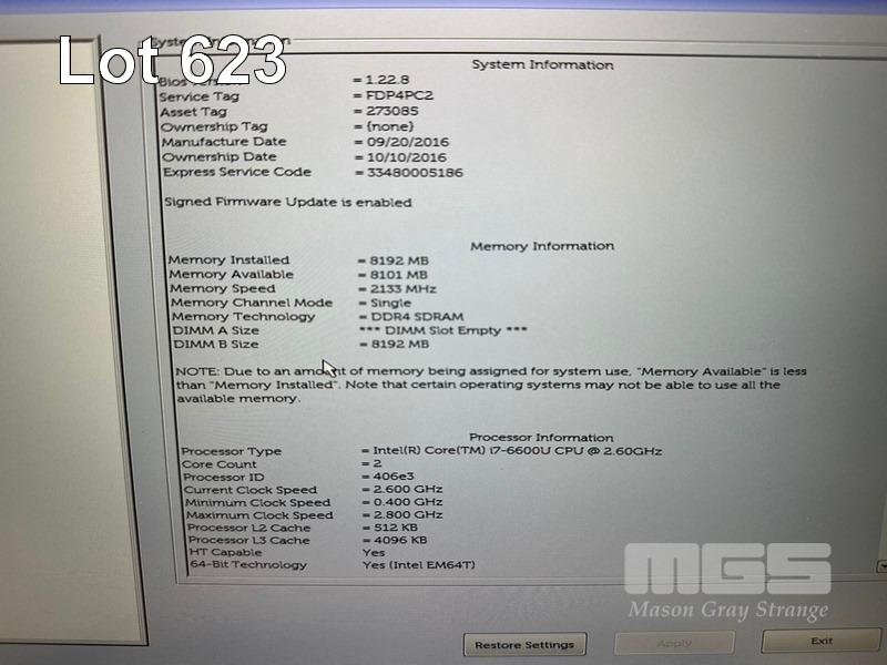 LAPTOP, DELL LATITUDE E7270, CORE i7 6600U (6TH GEN) @ 2.6GHz, 8GB DDR4 RAM, 256GB M.2 SSD, 12.5" WIDESCREEN (1920x1080), INTEL SKYLAKE GRAPHICS, Wi-Fi, BLUETOOTH, WINDOWS 10 HOME INSTALLED (NO POWER SUPPLY) (NOTE: MARKS ON SCREEN) S/N:FDP4PC2