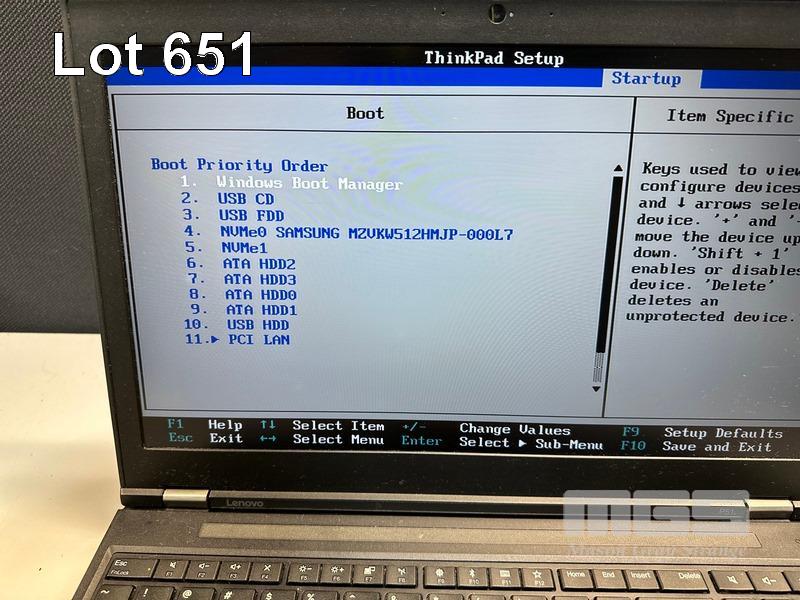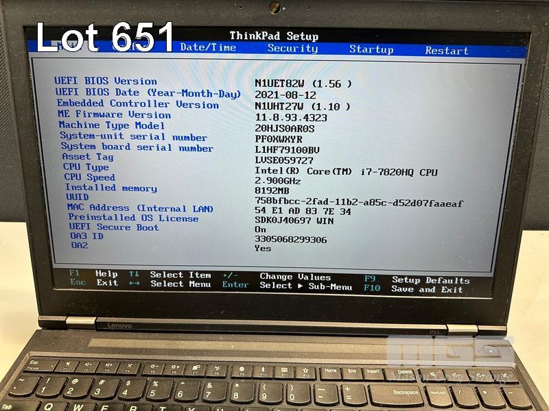 LAPTOP, LENOVO THINKPAD P51 MOBILE WORKSTATION, TYPE 20HJ, CORE i7 7820HQ (7TH GEN) @ 2.9GHz, 8GB DDR4 RAM, 512GB NVMe M.2 SSD, 15.6" WIDESCREEN (1920x1080), 4GB NVIDIA QUADRO M2200 VIDEO, Wi-Fi, BLUETOOTH, WINDOWS 10 PRO INSTALLED (NO POWER SUPPLY) (NOTE: MARKS & BRIGHT SPOT ON SCREEN, 1 x USB PORT DAMAGED) S/N:PF0XWXYR