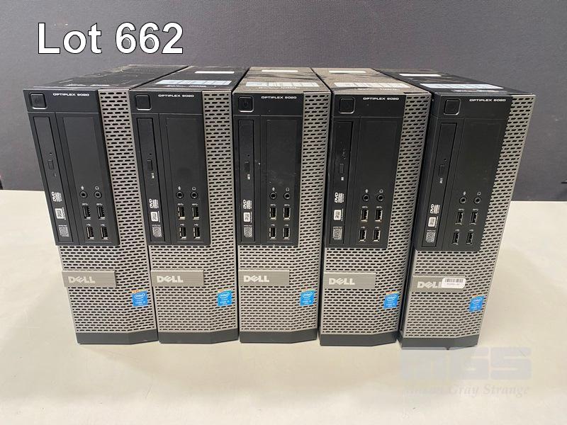 5 x DESKTOP PCS INC. - 4 x DELL OPTIPLEX 9020 SFF, CORE i5 4590 (4TH GEN) @ 3.3GHz, 8GB DDR3 RAM, 256GB SSD, DVD-RW, WINDOWS 10 HOME INSTALLED - 1 x DELL OPTIPLEX 9020 SFF, CORE i5 4670 (4TH GEN) @ 3.4GHz, 8GB DDR3 RAM, 250GB SSD, DVD-RW, WINDOWS 10 HOME INSTALLED (NO KEYBOARD, NO MOUSE) S/N:C0TTG52, 6V3DH32, 91V9R42, 12V9R42, GTJY622