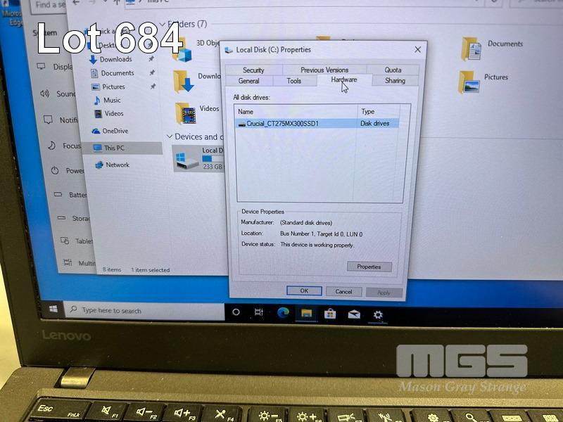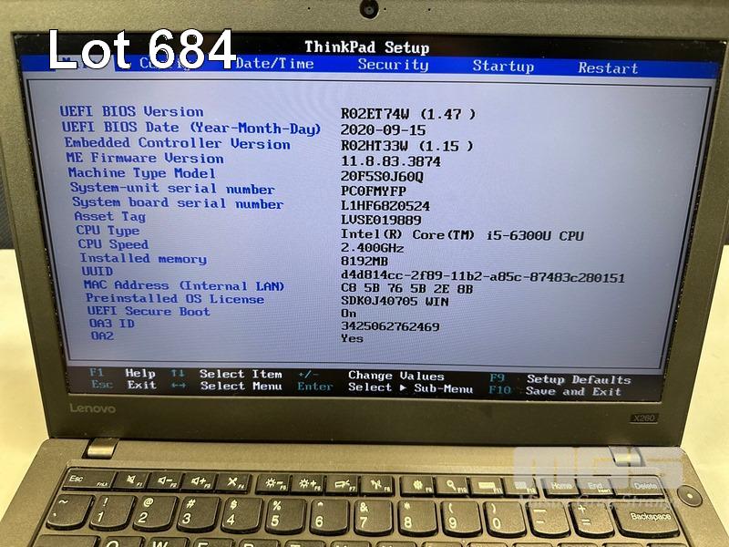 LAPTOP, LENOVO THINKPAD X260, TYPE 20F5, CORE i5 6300U (6TH GEN) @ 2.4GHz, 8GB DDR4 RAM, 275GB SSD, 12.5" WIDESCREEN (1366x768), INTEL HD VIDEO, Wi-Fi, BLUETOOTH, WINDOWS 10 PRO INSTALLED & POWER SUPPLY (NOTE: MINOR MARKS ON SCREEN) S/N:PC0FMYFP