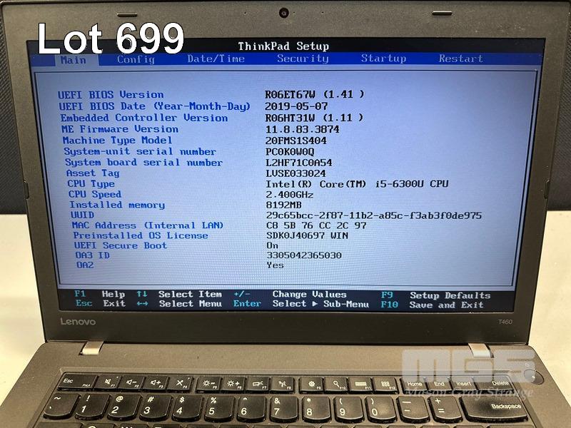 LAPTOP, LENOVO THINKPAD T460, TYPE 20FM, CORE i5 6300U (6TH GEN) @ 2.4GHz, 8GB DDR3 RAM, 256GB SSD, 14" WIDESCREEN (1366x768), INTEL HD VIDEO, Wi-Fi, BLUETOOTH, WINDOWS 10 PRO INSTALLED & POWER SUPPLY (NOTE: MINOR MARKS ON SCREEN) S/N:PC0K0W0Q