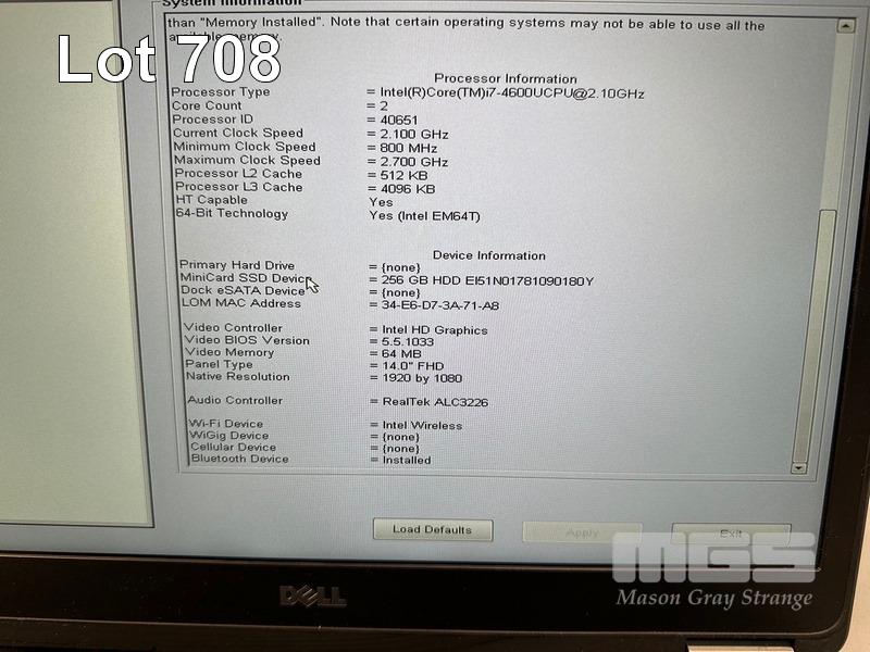 LAPTOP, DELL LATITUDE E7440, CORE i7 4600U (4TH GEN) @ 2.1GHz, 8GB DDR3 RAM, 256GB SSD, 14" WIDESCREEN (1920x1080), INTEL HD GRAPHICS, Wi-Fi, BLUETOOTH, WINDOWS 10 HOME INSTALLED (NO POWER SUPPLY) (NOTE: MINOR CRACK LINE ON CASING) S/N:3RB0L32
