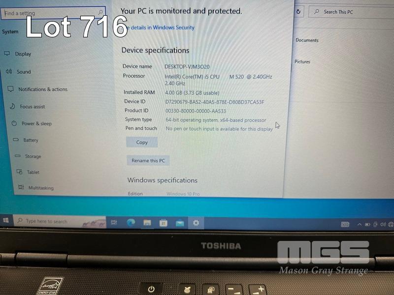 LAPTOP, TOSHIBA TECRA A11, CORE i5 M520 @ 2.4GHz, 4GB DDR3 RAM, 320GB SATA HDD, DVD-RW, 15.6" WIDESCREEN (1600x900), INTEL HD VIDEO, Wi-Fi, WINDOWS 10 PRO INSTALLED & POWER SUPPLY (NOTE: SMALL SCRATCH ON SCREEN) S/N:4A066744H