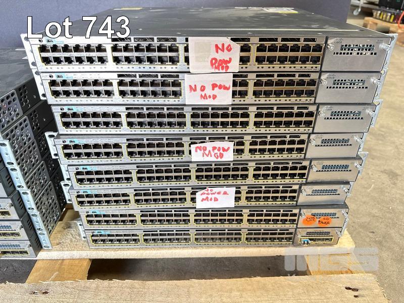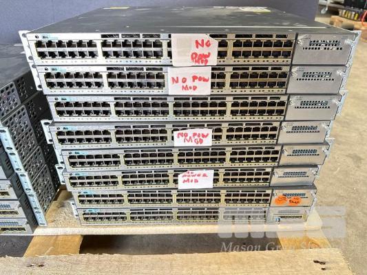 8 x CISCO CATALYST 3750-X SERIES 48-PORT SWITCHES, WS-C3750X-48P-S (NO POWER SUPPLIES, NO CABLES) S/N:FDO1723R09S, FDO1723Z0CW, FDO1722R29P, FDO1722R1VG, FDO1722R1SU, FDO1649P1QS, FDO1522R008, FDO1630R3YB