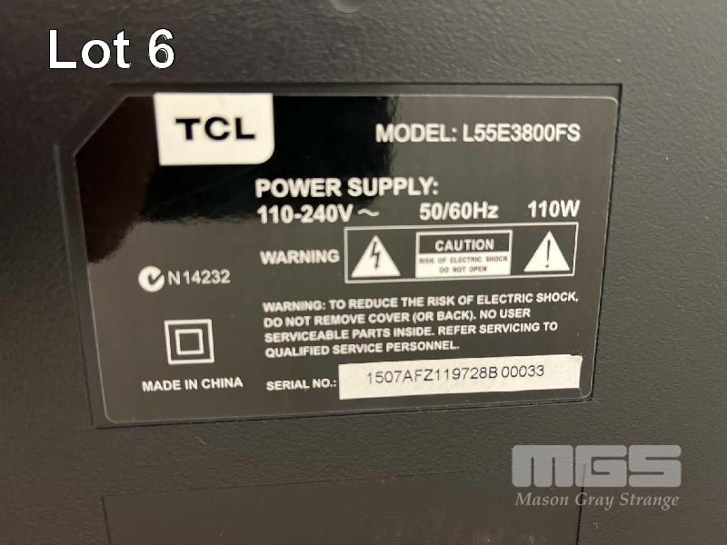 TCL 55" TV, MODEL: L55E3800FS, 240v (NO REMOTE)