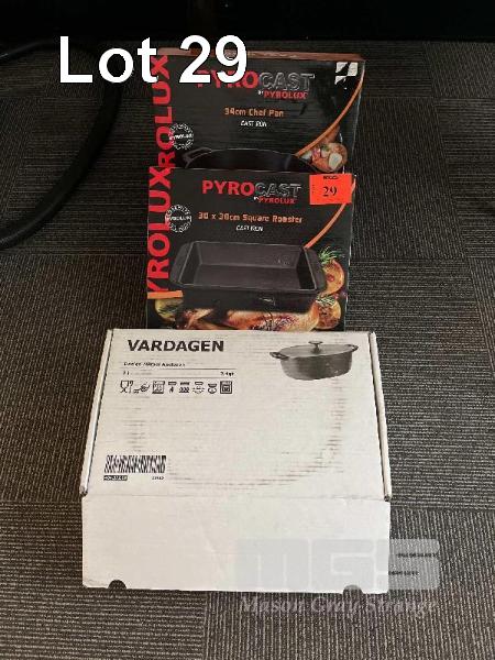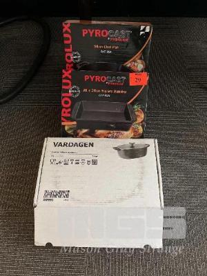 2 x PYROCAST CASTIRON SQUARE ROSTERS 300 x 300mm 1 x IKEA VARDGEN 7 LITRE CASTIRON CASSEROLE DISH ALL NEW IN BOX!