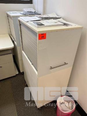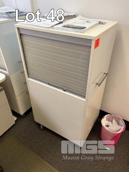 2 x MOBILE OFFICE STORAGE CABINET, 3 DRAWER WITH SIDE ACCESS ROLLING TAMBOUR DOOR