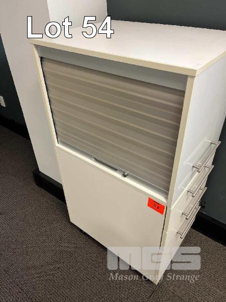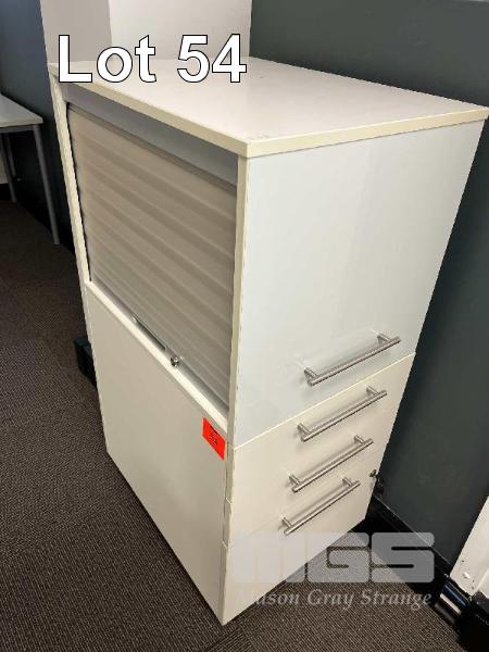 MOBILE OFFICE STORAGE CABINET, 3 DRAWER WITH SIDE ACCESS ROLLING TAMBOUR DOOR 500 x 650 x 1200mm (H) (LOCATED ON 7TH FLOOR)