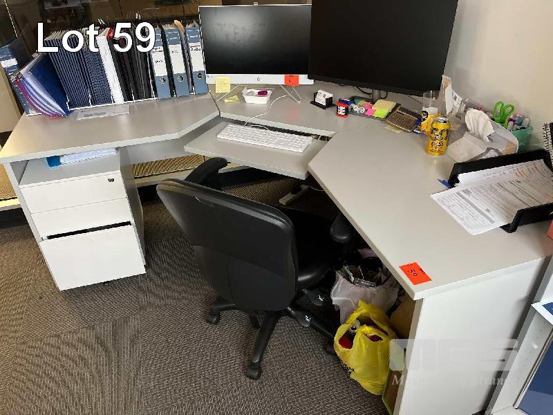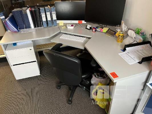 TIMBER LAMINATE CORNER DESK 1700 x 1800mm, 4 TIER TIMBER LAMINATE BOOKSHELF 900 x 300 x 1800mm