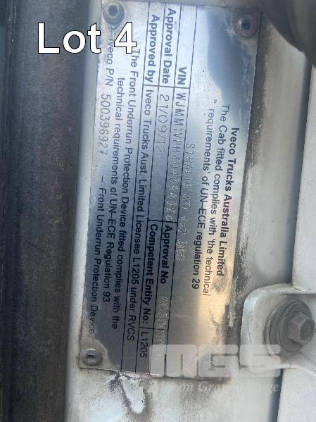 2012 IVECO 360-ES STRALIS PRIME MOVER SINGLE DRIVE REG: WCH 010 (SA) VIN: WJMM1VPH404394928 ODO: 276,748km AUTO, DIESEL, WHITE, 2 DOORS, SINGLE DRIVE (WITH PAPERS, WITH 1 KEY/S, WITH OWNER'S MANUAL, WITH SERVICE BOOKS)
