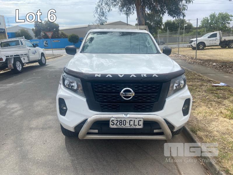 2021 NISSAN NAVARA SINGLE CAB UTE RWD REG: S280 CCC (SA) VIN: MNTABAD23A0000265 ENG: YS23DDT ODO: 7,921 2300cc, AUTO, TURBO DIESEL, WHITE, 2 DOORS, 2 SEAT, RWD ABS, AIR BAG, AIR CON, ALLOY TRAY, ALLOY WHEELS, BLUETOOTH, CD PLAYER, CENTRAL LOCKING, CRUISE CONTROL, NUDGE BAR, POWER STEERING, POWER WINDOWS, SPARE WHEEL, TOW BAR (WITH PAPERS, NO OWNER'S MANUAL, WITH SERVICE BOOKS)