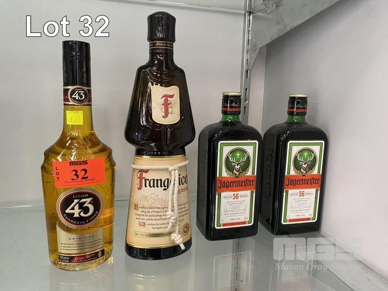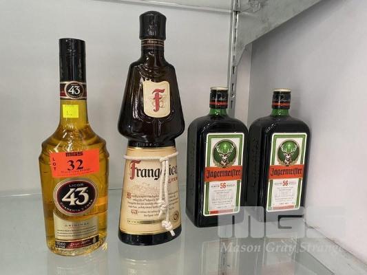 2 x BOTTLES JAGERMEITERS, 1 x BOTTLE FRANGELICO & 1 x BOTTLE LICOR 43, 700ml