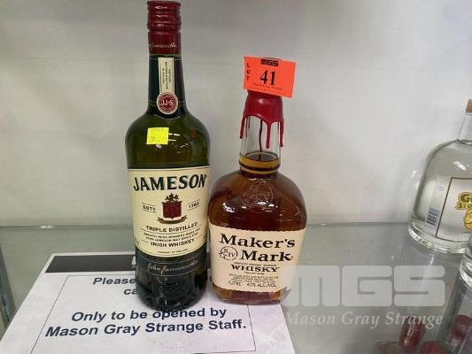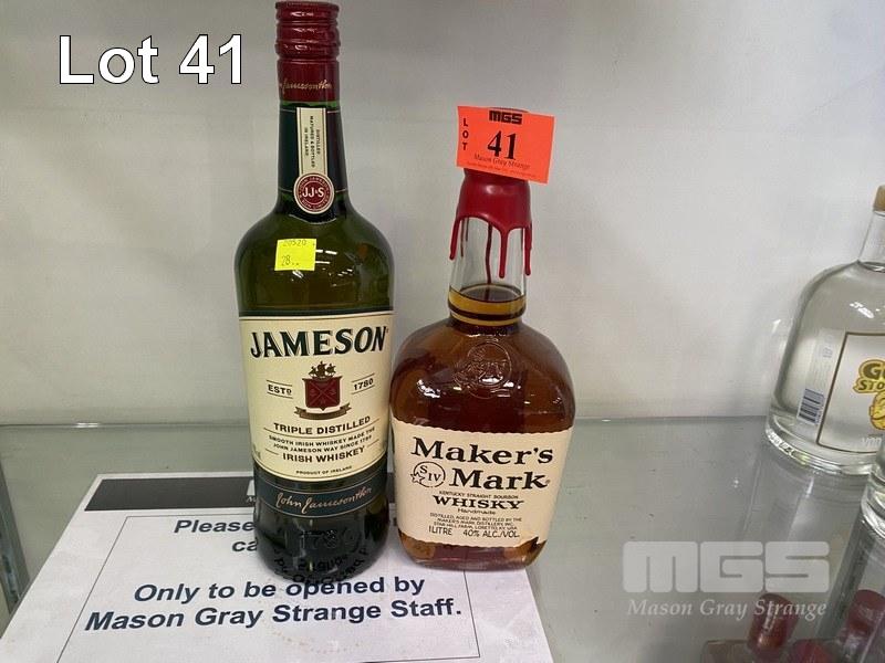 1 x BOTTLE MAKERS MARK WHISKY, 1 LITRE & 1 x BOTTLE JAMESON TRIPLE DISTILLED WHISKY, 1 LITRE