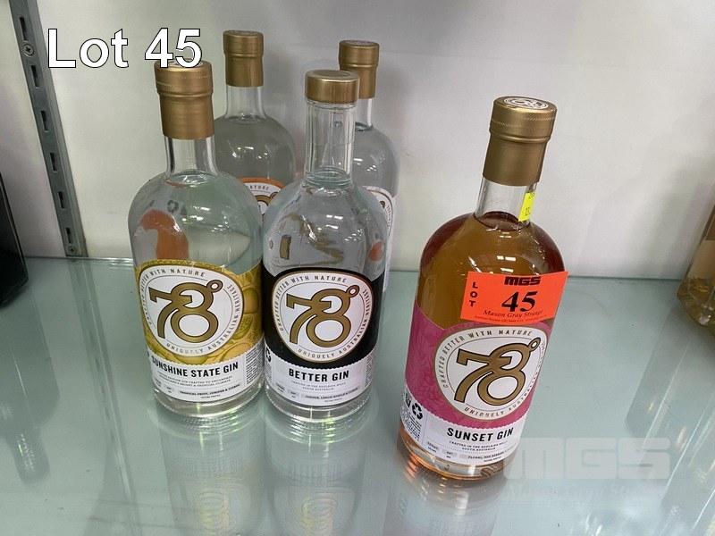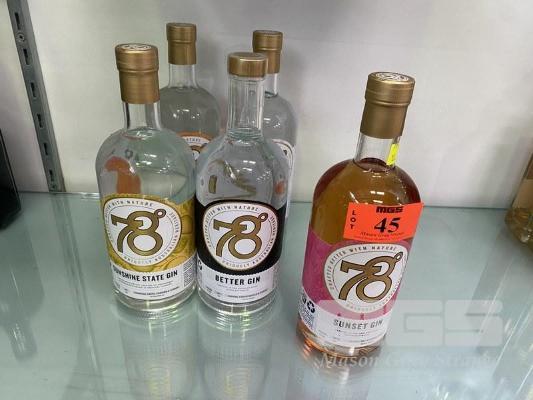 5 x BOTTLES ASSORTED 78 GIN, 700ml