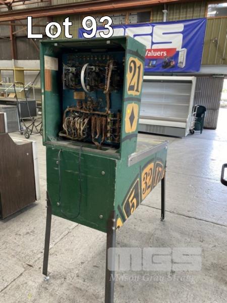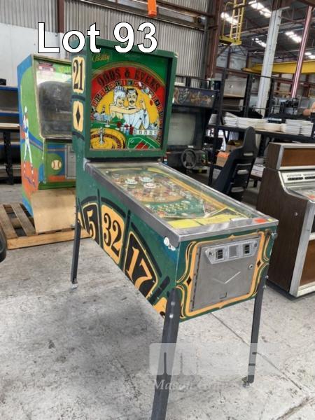 PINBALL MACHINE, ODDS & EVENS COIN OP, LIGHTS UP AND PLAYS, FLIPPERS AND BOUNCERS WORKING, SCORE BOARD COUNTER WORKS. 110v WITH POWER SUPPLY (NOTE : BACK COVER MISSING)