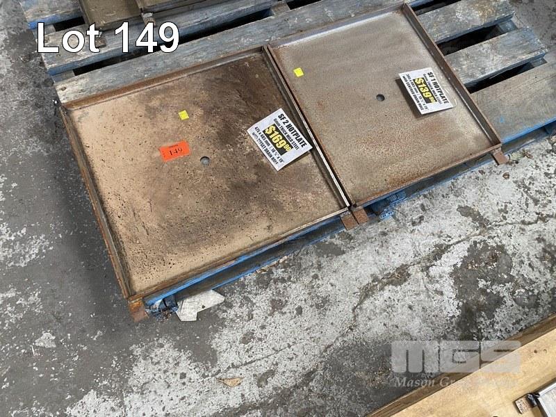 2 x BBQ HOT PLATES, CAST IRON, 475 x 485mm & 395 x 485mm