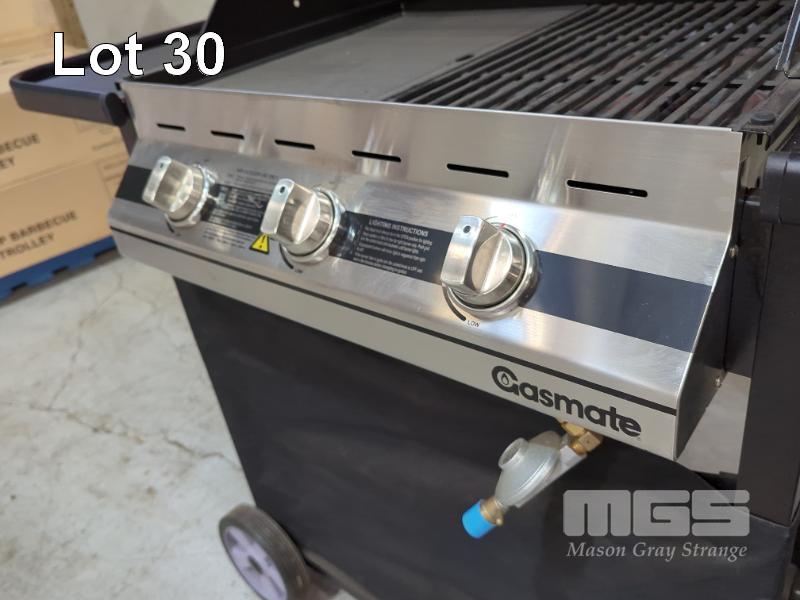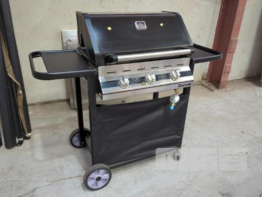 GASMATE VEGA MOBILE 3-BURNER COVERED GAS BBQ ON 2-DOOR CABINET TROLLEY